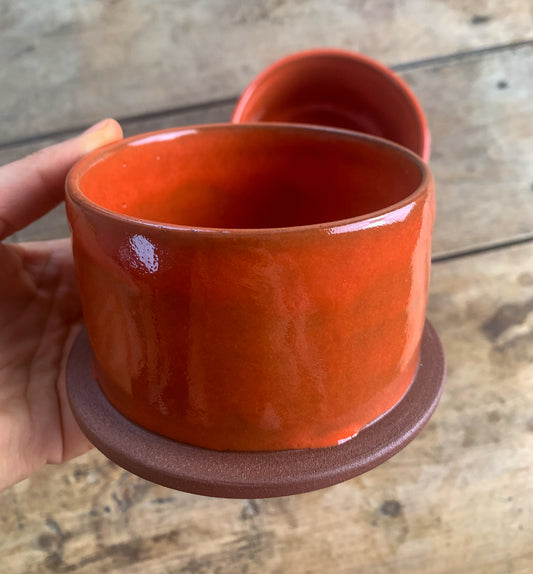 Ceramic French Butter Keeper – Terracotta Clay, Carrot Glaze, Family Size