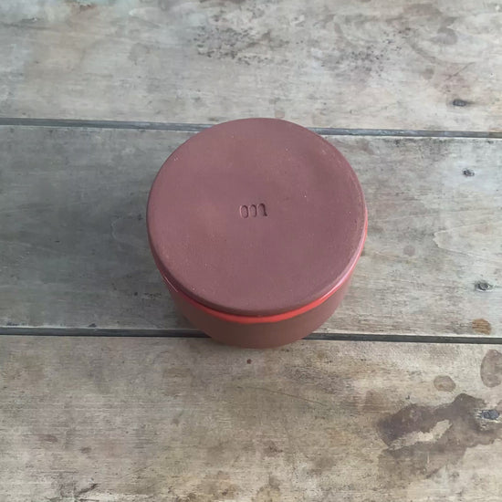 This French Butter Keeper is handmade from warm red terracotta clay and finished with a smooth, glossy Carrot-colored glaze on the inside. The hue feels alive and sunlit, adding a gentle accent to your kitchen while remaining practical and timeless.